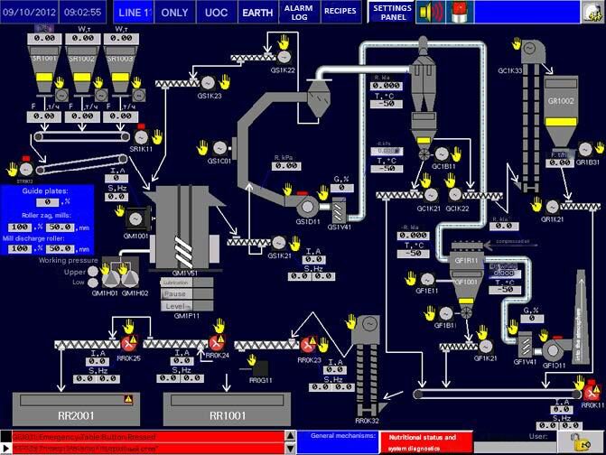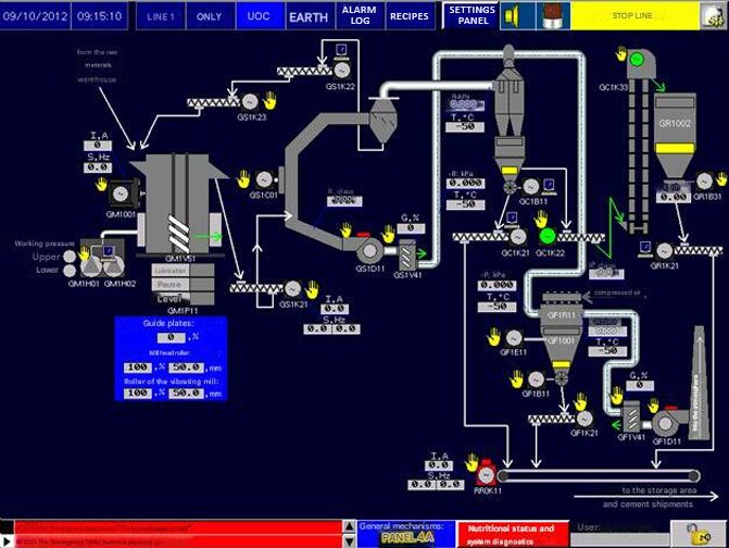 Cement manufacturing processes are controlled using highly reliable operator panels with graphic displays showing the status of currently running processes. |